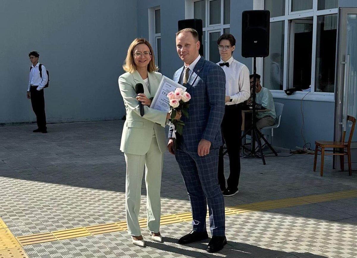 Заместитель начальника Управления общественной и государственной безопасности «АНБ» Александр Даренков поздравил первоклассников от имени Академии и спортивной общественности Татарстана 2 сентября 2024 г. в Республике Татарстан прошли торжественные линейки, посвящённые Дню знаний и началу нового учебного года. Именитые спортсмены и общественные деятели приняли участие в официальной части школьных мероприятий. Заместитель начальника Управления общественной и государственной безопасности Учреждения «Академия Национальной Безопасности», руководитель Исполнительного комитета Российского Союза боевых искусств (РСБИ) по РТ, заслуженный тренер Александр Даренков поздравил учащихся и учителей Средней общеобразовательной школы 98 Вахитовского района города Казани от имени «АНБ» и спортивной общественности Республики Татарстан. Воспитанники федерации киокусинкай выступили с показательной программой для первоклассников. Александр Даренков наградил директора школы Почетной грамотой Минис
