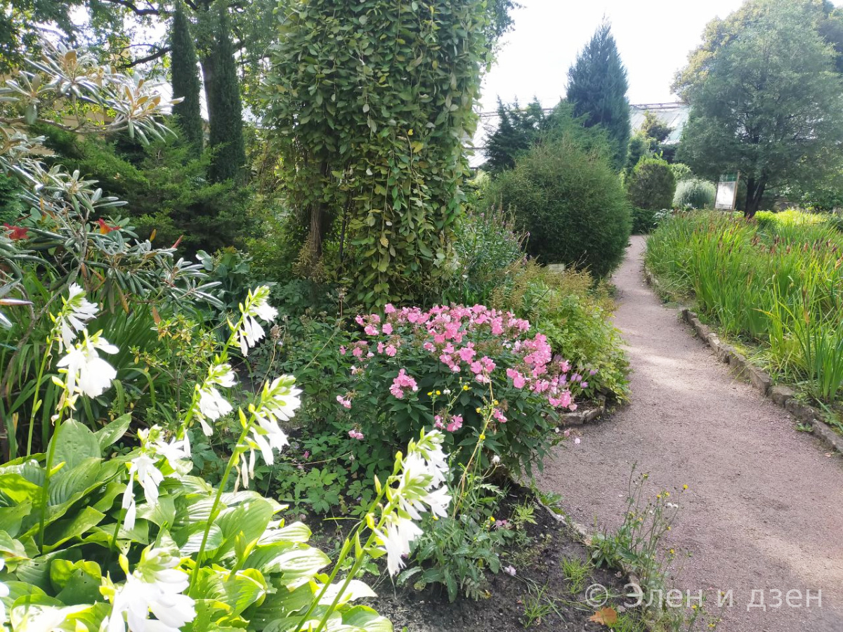 Небанальное место — Ботанический сад Петра Великого. А точнее, одна из его наружных экспозиций в Северном дворе, которая официально называется «Сад непрерывного цветения». Почему-то посетители часто так спешат в оранжереи, что промахиваются и пробегают мимо небольшого (около 10 соток), но живописного участка, сплошь усаженного декоративными и цветущими растениями. Отчасти это объясняется тем, что сад располагается под вековыми дубами, обсажен кустарниками и не особо бросается в глаза. Но если вглядеться в листву, легко увидеть то тут, то там красивые соцветия. Стоит поддаться их манкости, чтобы оказаться в укромном садике, который в любое время года находит способ удивить гостей. В сентябре здесь расцветают многочисленные виды хризантем и георгинов, флоксы, бархатцы, рудбекии, безвременники (похожие на огромные крокусы осенние луковичные цветы). Есть растения с абсолютно экзотическими соцветиями, например, лаконос ягодный. По-прежнему прекрасны розы (многие из них еще не успели отцвест