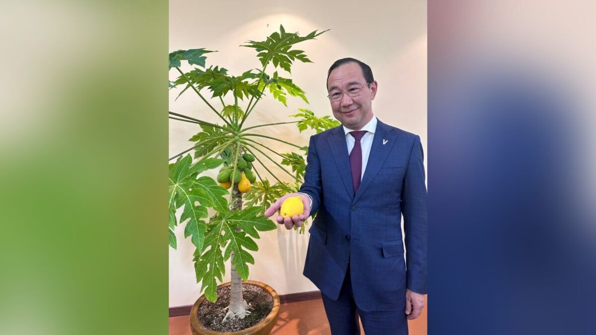 Сотрудники тепличного комплекса «Саюри» пробуют экспериментально выращивать разные овощи и фрукты. На днях в теплицах комплекса созрели первые плоды тропической папайи. Об этом сообщил глава Якутии Айсен Николаев в своем телеграм-канале. Всего было посажено семь деревьев папайи, которые прижились и дали плоды. «Наши специалисты доказали, что даже Якутии в тепличных условиях можно выращивать такие экзотические растения. Главное — это компетентные специалисты, правильный подход, и конечно же, любовь к своей работе», — сообщил Айсен Николаев. Отметим, тепличный комплекс «Саюри» является ключевым резидентом ТОР «Якутия». Ассортимент «Саюри» и объемы производства ежегодно расширяются. Фото: https://t.me/aisen_nikolaev