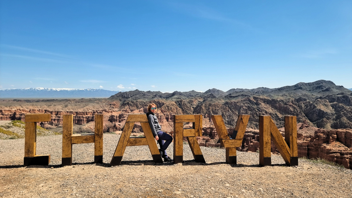 Верхняя тропа завершается арт объектом в виде слова Чарын, где можно сделать красивые фотографии