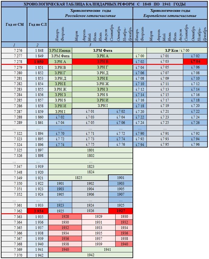 Учитывая полученные данные, был определен точный год перехода на новую (десятичную) систему летоисчисления – 1.848 год по СХШ (Современная Хронологическая Шкала) (7.276 год от СМ (от Сотворения Мира)).