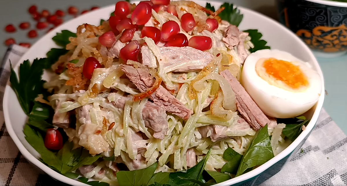 Состав салата Ташкент довольно простой, но при этом салат получается очень вкусным. Этот мясной салат с зеленой редькой подходит и для повседневного меню, и на праздничный стол. Подробности смотрите в моем видео ниже: Приятного аппетита, радуйте своих близких! 😊