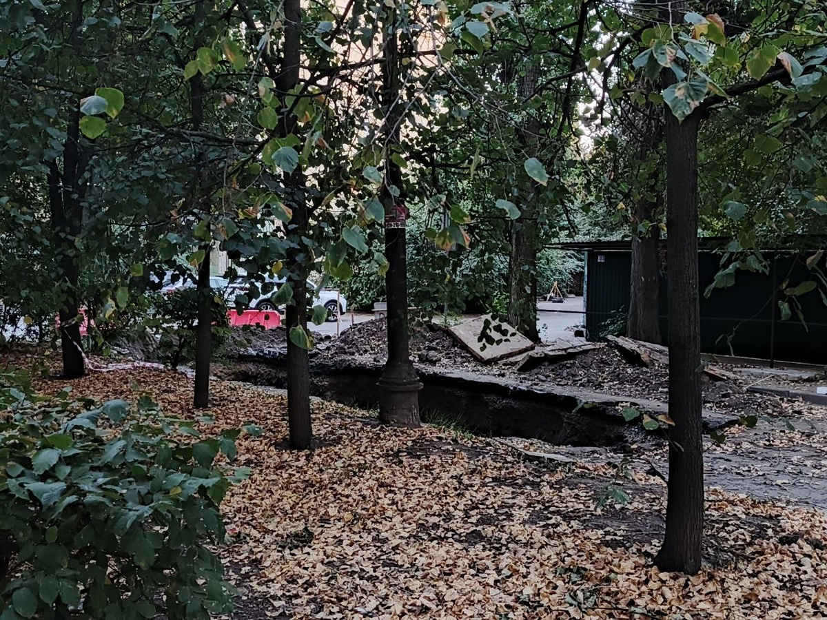 Воронежцы сообщили о «любимой забаве» коммунальщиков. Между домами №№6 и 7 несколько недель назад раскопали яму и...забыли про неё.