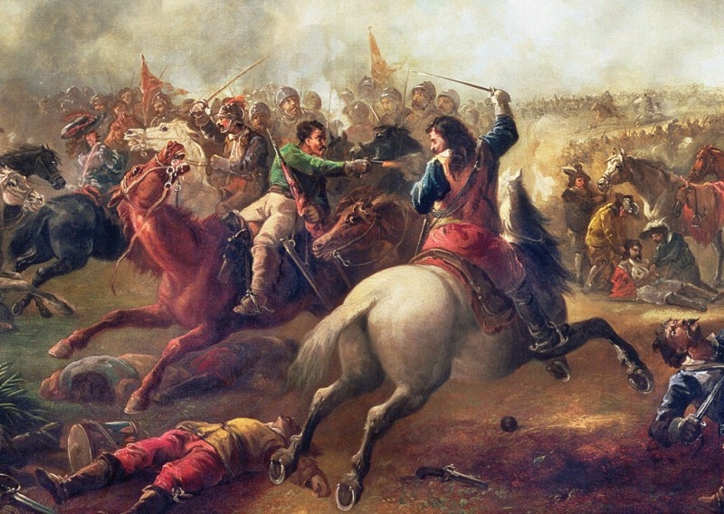 Довольно долго стороны обменивались только пушечными ядрами. Современники утверждают, что это была просто «огненная стихия». Но мы-то понимаем, что полсотни орудий XVII века уж точно не могли устроить чего-то сравнимого с Бородино или Ватерлоо.