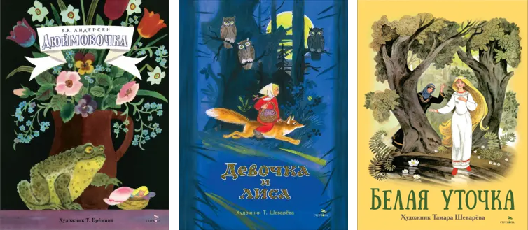 Лет двадцать назад "новые старые книги" были очень популярны: едва ли не в каждом издательстве была серия (а то и не одна), где печатались книги, знакомые нам по советскому детству. Потом отчего-то серии эти стали закрываться, книг выходило все меньше и меньше... Но, конечно, место это совсем пустым оставаться не может. Книги нашего детства остаются востребованными и сегодня, так что – нет-нет – да и выйдет где-то книжка со знакомыми картинками, вызывающими ностальгию. Вот не очень давно издательство "Стрекоза" обновила серию "Книги нашего детства", переиздав три сказки в "том самом виде". "Дюймовочка" с иллюстрациями Ерёминой повторяет издание 1970 года. Эта книга уже не раз переиздавалась, поэтому чего-то особенного в ее очередной инкарнации я не вижу. Но иллюстрации, конечно, хороши! "Девочка и лиса" с рисунками Шеварёвой тоже с полок магазина, можно сказать, надолго не уходила. Эту книгу я хорошо помню по изданию 1980 года. Но издавалась она и в наше время. А вот третья книжка – ск