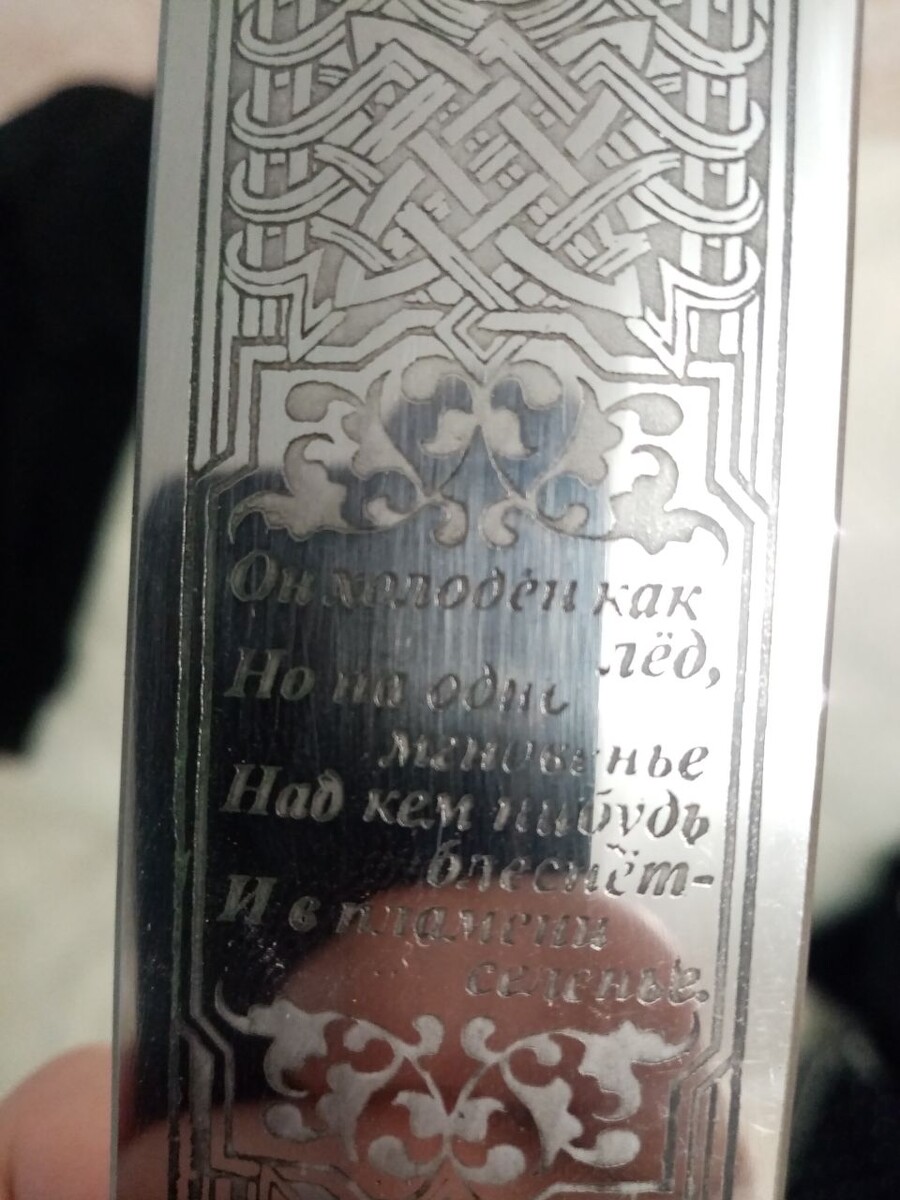 Мне подарили этот сувенир еще много лет назад. И эта фраза, впервые мной прочитанная, довольно глубоко отпечаталась внутри. Я бы назвал это отпечатком силы. Силы, которая говорит тебе "Я оружие. Я сила. Будь мудр".