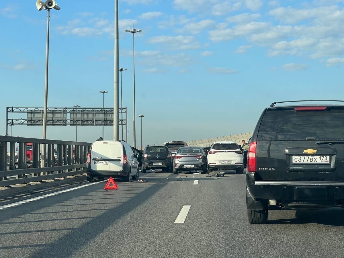 Появилось видео массового ДТП на КАД, ставшего причиной гигантской пробки