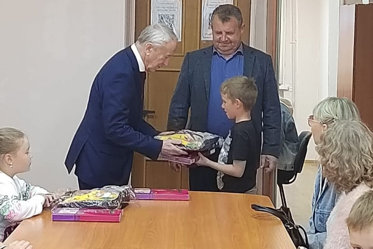 Вячеслав Погудин передал наборы канцтоваров школьникам Верхнего Тагила