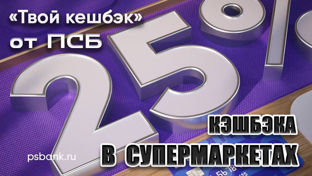 Промсвязьбанк обещает начислить 25% кэшбэка за покупки в супермаркетах в первые 60 дней тем, кто оформит дебетовую карту "Твой кешбэк" в сентябре, и у кого не было действующих карт банка с 01.03.24. Условия в pdf.
