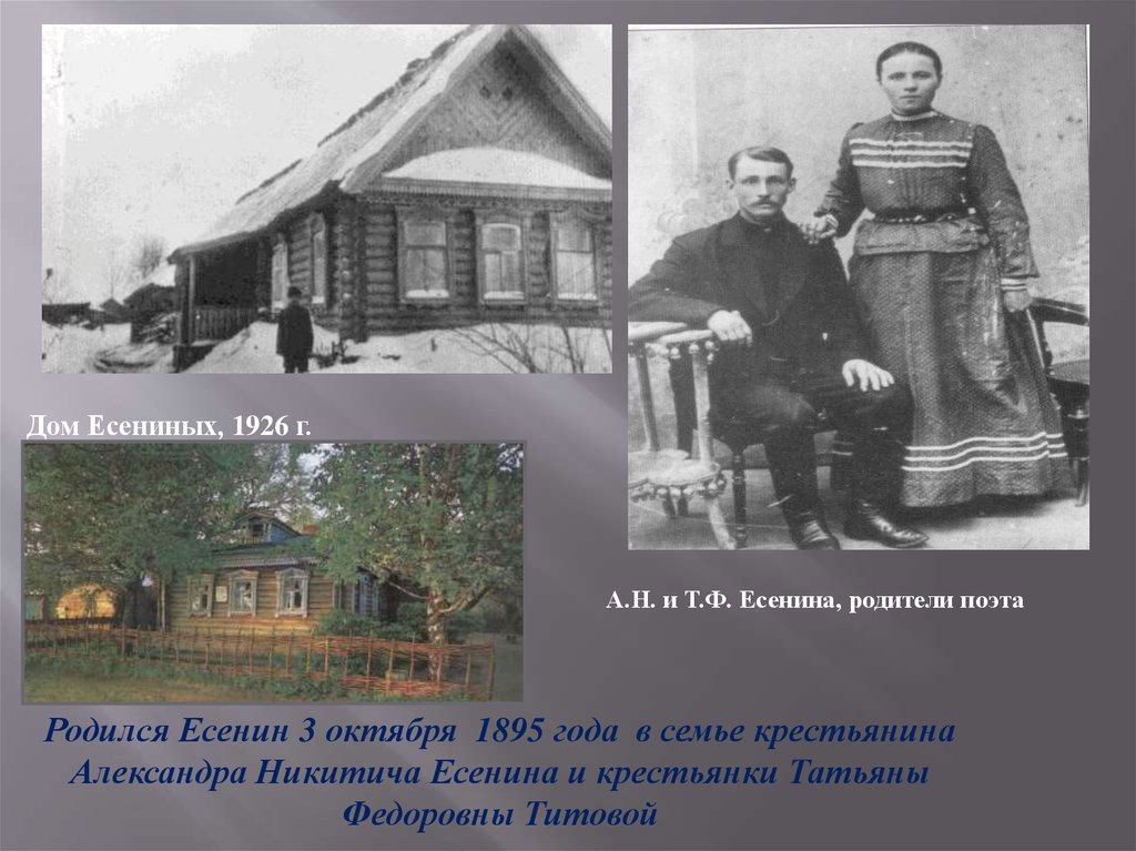 Покупая усадьбу, дедушка наш одновременно составил завещание: "В случае моей, Есенина, смерти, то все устроенное на оной усадьбе строение с находящимся в оном имуществом должно поступить в вечное и потомственное владение жены моей Аграфены Панкратьевой и наследникам моим по конец..."