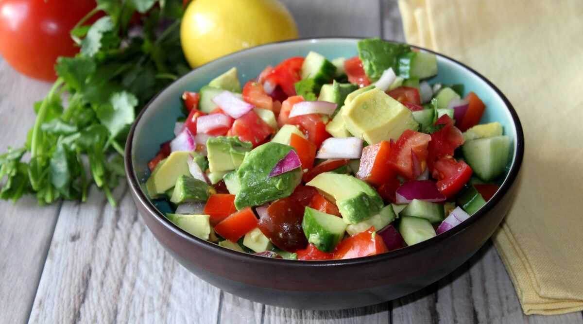 ### Ингредиенты: - Авокадо — 1-2 шт. - Помидоры черри (или обычные помидоры) — 200 г - Красный лук — 0,5 шт. - Кинза или петрушка — по вкусу - Оливковое масло — 2-3 ст. л. - Лимонный сок — 1 ст. л. - Соль, перец — по вкусу ### Приготовление: 1. **Подготовка овощей**: - Авокадо разрежьте пополам, удалите косточку и нарежьте мякоть кубиками. - Помидоры черри нарежьте пополам (если используете обычные помидоры, нарезайте кубиками). - Красный лук нарежьте тонкими полукольцами. - Кинзу (или петрушку) мелко порежьте. 2. **Сборка салата**: - В большой миске соедините нарезанное авокадо, помидоры и красный лук. Аккуратно перемешайте. 3. **Заправка**: - Полейте салат оливковым маслом и лимонным соком. Добавьте соль и перец по вкусу. Бережно перемешайте, чтобы не повредить кусочки авокадо. 4. **Подача**: - Переложите салат в сервировочное блюдо и посыпьте свежей зеленью. ### Приятного аппетита! Это салат очень свежий и насыщенный вкусами, отлично подходит для легкого п
