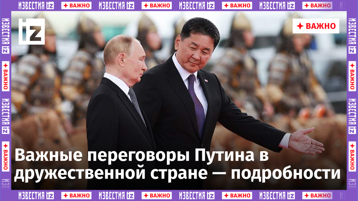 В понедельник, 2 сентября, президент России Владимир Путин прибыл с официальным визитом в Монголию. В программу поездки вошли участие в мероприятиях по случаю 85-летия совместной победы советских и монгольских вооруженных сил на реке Халхин-Гол и переговоры российского лидера с монгольским коллегой Ухнагийном Хурэлсухом в узком и расширенном составах 3 сентября. О том, какие темы затронули стороны, читайте в материале «Известий». В аэропорту Улан-Батора главу государства встретил выстроившийся в линию почетный караул в традиционной монгольской униформе. На следующий день, 3 сентября, Путин и Хурэлсух прибыли на площадь Сухэ-Батор в Улан-Баторе на торжественную церемонию в честь официальной встречи. На площади были подняты государственные флаги, звучали гимны обеих стран. Почетный караул монгольских конников встретил российского лидера на невысоких лошадях, которые передавались сотнями тысяч Советскому Союзу в годы Великой Отечественной войны. Перед началом встречи с монгольским лидером