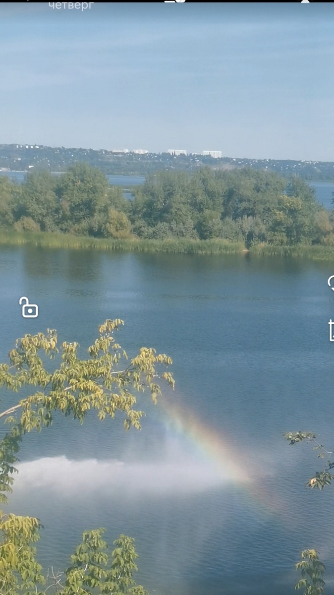 Радуга. Совсем недавно из окна своего дома я увидела маленькое чудо. Пожарная команда на своей машине промывала шланги или они называются совсем по другому я не знаю , так вот в лучах солнечного света рождалось это маленькое чудо .