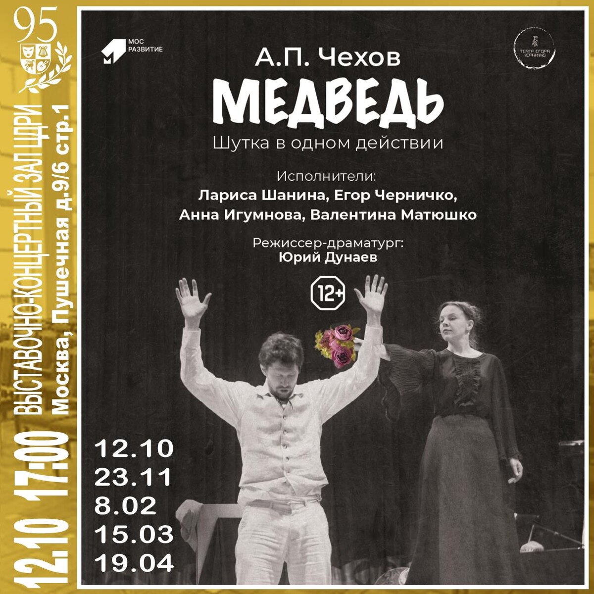 12 октября, суббота 17:00 — ЦДРИ Спектакль-водевиль «Медведь» — А.П. Чехов