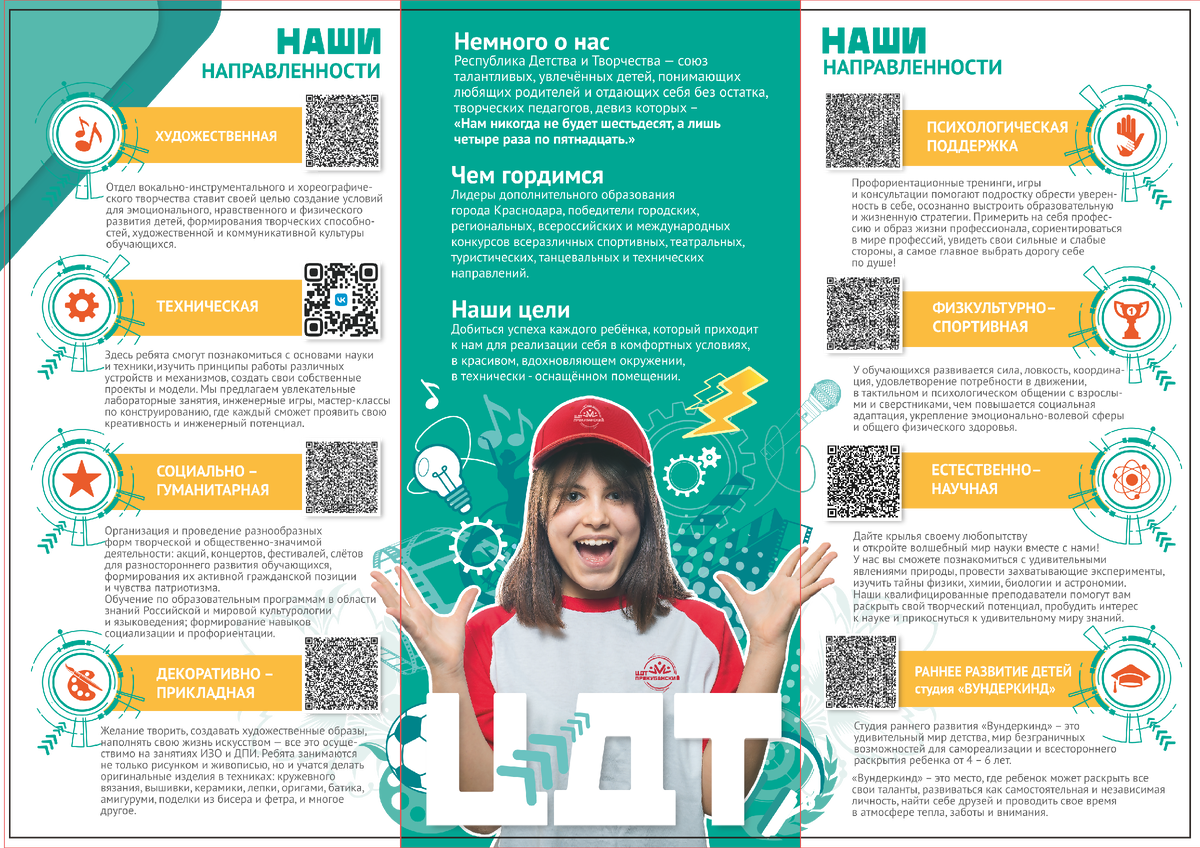 💬Центр детского творчества «Прикубанский – лидер дополнительного образования города Краснодара. Мы победители международных, всероссийских, краевых творческих конкурсов и спортивных соревнований. 🔊Канал «ЦДТ «Прикубанский» создан, чтобы делиться ценными материалами и наработками в сфере образования: 🔹О работе с онлайн-площадками и образовательными ресурсами; 🔹«Образование» в подборках и рекомендациях от педагогов; 🔹Обмен опытом и истории профессионального успеха. Нас интересно будет читать не только молодому инициативному педагогу, но и профессионалу с богатым опытом. ✅Присоединяйся к нашему сообществу, чтобы не пропустить качественный и полезный контент❗❗ 🔔А также подпишись на социальные сети «ЦДТ «Прикубанский» - будь в курсе наших новостей: ✔ https://vk.com/cdtprikubanskiy ✔ https://t.me/cdtprikubansky