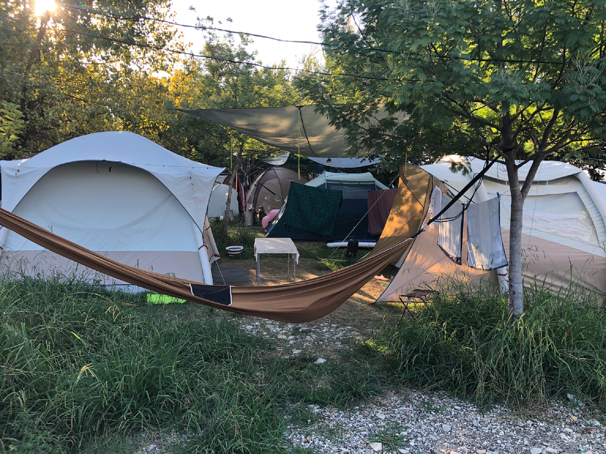 Как только мы заехали в кемпинг мне захотелось закрыть глаза и раствориться в морском воздухе. Сплошной ряд палаток и машин, вперемешку со столиками, гамаками, стульями, детьми, и еще бог знает, чего. Все смешалось: люди, кони…