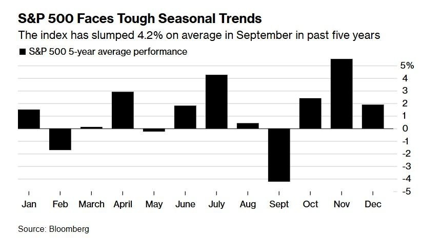 По крайней мере об этом говорит статистика американского 🇺🇸 рынка акций За последние 5 лет индекс SP500 снижался в сентябре 📉в среднем на 4,2% На более длинном горизонте все не так драматично (с 1928 года среднее снижение за сентябрь в пределах 1%). Нужно правда сказать, что в 40% случаев наблюдений американский рынок в сентябре все-таки рос, а не падал. Какого-то внятного объяснения негативной сентябрьской динамики нет Наиболее правдоподобные версии: ▶️ Трейдеры возвращаются после летних отпусков и начинают ребалансировку портфелей, от которой воздерживались летом из-за низкой ликвидности ▶️ Часть участников рынка проводят налоговую оптимизацию: фиксируют убыточные позиции, чтобы снизить налогооблагаемую базу. (Например, это могут делать УК паевых фондов, у которых финансовый год зачастую начинается не 1 января, а 1 октября) В этом году поводов поволноваться в сентябре у рынков хватает. В Америке все будет крутиться вокруг заседания ФРС 17-18.09 Будут ли рынки вести себя «как обычн