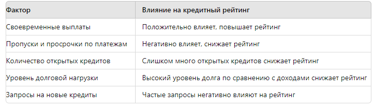 Автор: Фаиль Габбасов — юрист по решению проблем с кредитной историей, банками и БКИ, с опытом работы с 2015 года. Кредитный рейтинг — важный показатель, определяющий условия получения кредита. Он влияет на процентные ставки, доступность кредитных продуктов и шансы на одобрение займа. В данной статье мы подробно рассмотрим, как кредитный рейтинг влияет на условия кредитования, что на него влияет и как его можно улучшить. Кредитный рейтинг — это числовое значение, которое отражает кредитоспособность заемщика. Он формируется на основе данных из кредитной истории, таких как своевременность выплат по кредитам, количество открытых кредитов и задолженностей, уровень долговой нагрузки и частота обращений за кредитами. Основные факторы, влияющие на кредитный рейтинг: Чем выше кредитный рейтинг, тем лучше условия кредитования предлагаются заемщику. Давайте рассмотрим основные факторы, на которые влияет кредитный рейтинг. Процентная ставка — один из главных параметров кредита, зависящий от кред