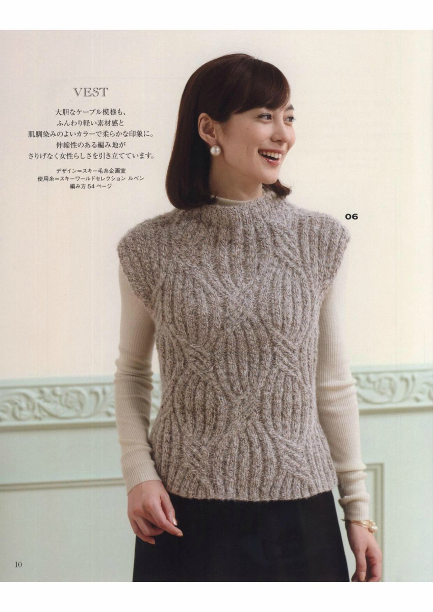 Вязаные на спицах жилеты и безрукавки из японских журналов