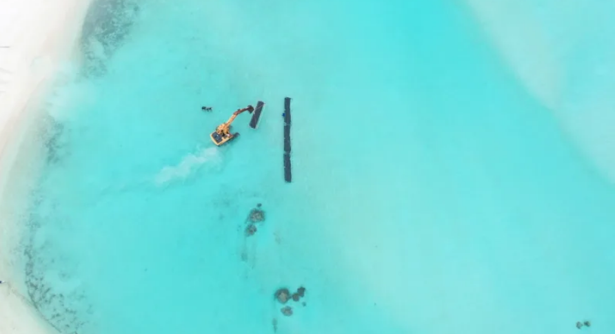 На Мальдивах Лаборатория самостоятельной сборки Массачусетского технологического института (MIT) и местная организация Invena используют подводные конструкции и силу океана, чтобы заставить песок накапливаться в тщательно выбранных местах для защиты островов и даже для потенциального выращивания новых. Об этом сообщает CNN. Первые такие испытания начались на Мальдивах в 2019 году, так как береговая линия почти каждого острова там подвергается эрозии. Так, ученые проводили различные эксперименты на мелководье к югу от столицы Мале. В частности, для установки барьера, позволяющего накапливать на морском дне песок, там использовали специальный материал, который при соприкосновении с водой из текстиля превращается в твердый бетон. Во время другого эксперимента над песчаной отмелью был установлен плавучий сад. Таким образом ученые хотели выяснить смогут ли корни помочь стабилизировать уже накопленный песок и собрать еще больше. Основатель и содиректор Лаборатории самосборки MIT Скайлар Тиб
