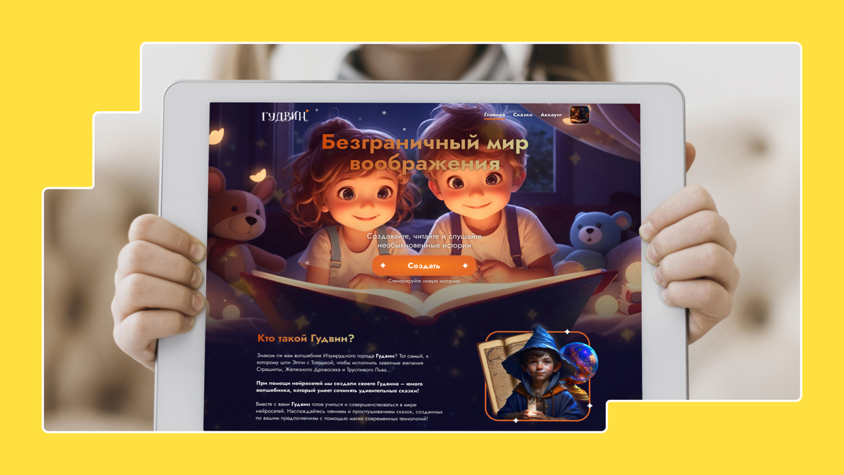 Гудвин — это волшебник Изумрудного города, который сочиняет удивительные истории. Дети могут почувствовать себя такими же сказочниками.