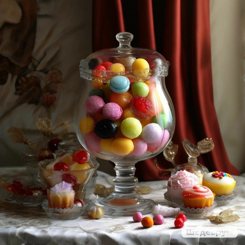 В красивой хрустальной вазе горой лежали конфеты разных мастей. Одна лучше другой. Разноцветные фантики играли на свету и напоминали праздничный фейерверк.