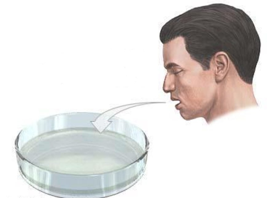 Мокроту, помещенную в чашке Петри, распределяют с помощью шпателя и иглы до получения полупрозрачного слоя. Это делают очень осто