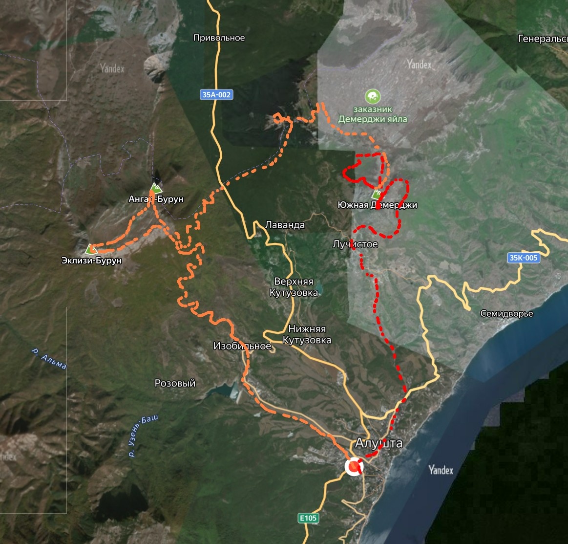 Однажды яндекс карты предложили мне этот пеший маршрут на Ангару-бурун от перевала). Да это и вправду самый короткий подъем, но технический очень трудный для неподготовленного туриста. Тропа ближе к вершине становиться настолько крутой, что уже думаешь, а не пора ли развернуться. Мы в тот раз по ней таки вскарабкались, но повторять не очень хочется)