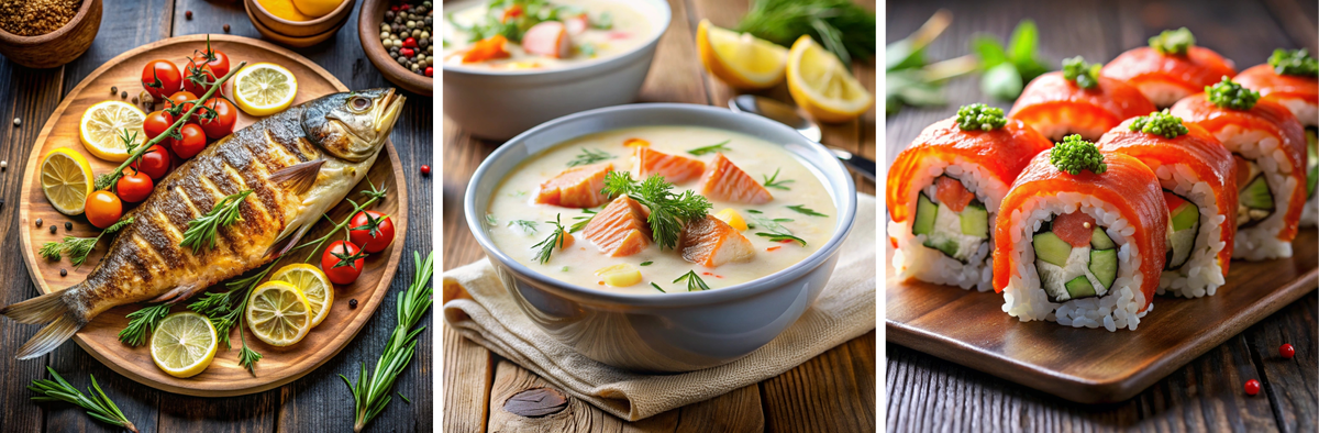 Рыба — это универсальный продукт, который можно приготовить множеством способов. Один из самых популярных вариантов — запеченная рыба. Приготовление рыбы в духовке позволяет сохранить все ее полезные свойства и сделать блюдо ароматным и вкусным. Если вы любите блюда с яркими вкусами, попробуйте приготовить рыбу на гриле или в сковороде. Обжаренная рыба с хрустящей корочкой и гарниром из свежих овощей станет отличным ужином. Также можно использовать различные маринады и специи для разнообразия вкусов. Супы и бульоны из рыбы тоже очень популярны. Например, уха, приготовленная на основе рыбы и овощей, обладает насыщенным вкусом и ароматом, а также согревает в холодные дни. Кроме того, рыба отлично подходит для приготовления суши и роллов. Нежное филе в сочетании с рисом и овощами создаст идеальное блюдо для любителей японской кухни. Таким образом, рыба — это не только полезный, но и универсальный ингредиент, который можно использовать для создания множества вкусных и разнообразных блюд.