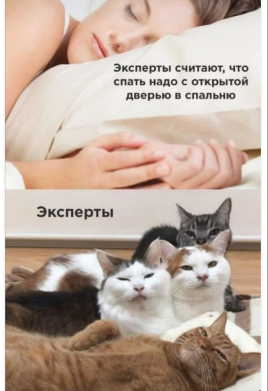 Начнем с мема в тему "Хитрые коты сами называющие себя Экспертами говорят хозяйке, что ей полезно и вредно делать у нее дома руководствуясь при этом своими исключительно корыстными целями"