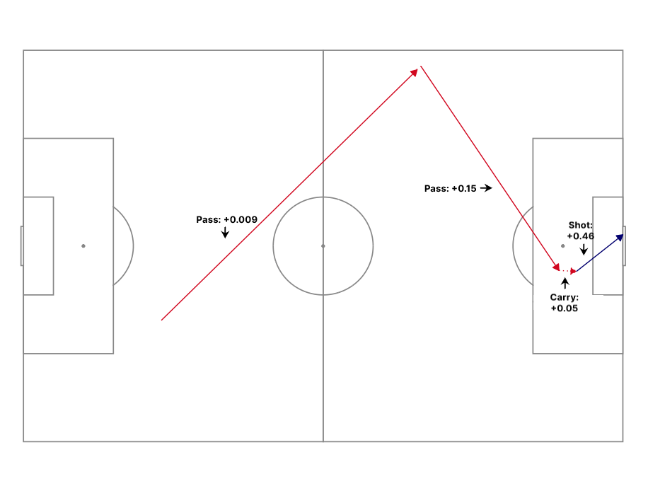 Система, которую мы использовали для анализа игроков Шпор, была ранним примером модели «Ценность владения», первоначально представленной Поллардом и Рипом в 1997 году и недавно популяризированной специалистом по анализу данных «Арсенала» Каруном Сингхом под названием «Ожидаемая угроза». Мы уже видели, как «Ожидаемые голы» делает шаг назад от голов, чтобы проанализировать качество ударов, которые могут привести к голам. Сделав еще один шаг назад, мы можем проанализировать передачи, которые приводят к ударам. И, вернувшись на шаг назад, мы можем подумать о пасах, которые приводят к передачам, которые приводят к ударам. И мы можем продолжать отступать назад, чтобы рассмотреть влияние любого действия на поле с точки зрения того, как оно может увеличить шансы нашей команды на победу. Это позволяет нам кое-что сказать о вкладе полузащитников и защитников.