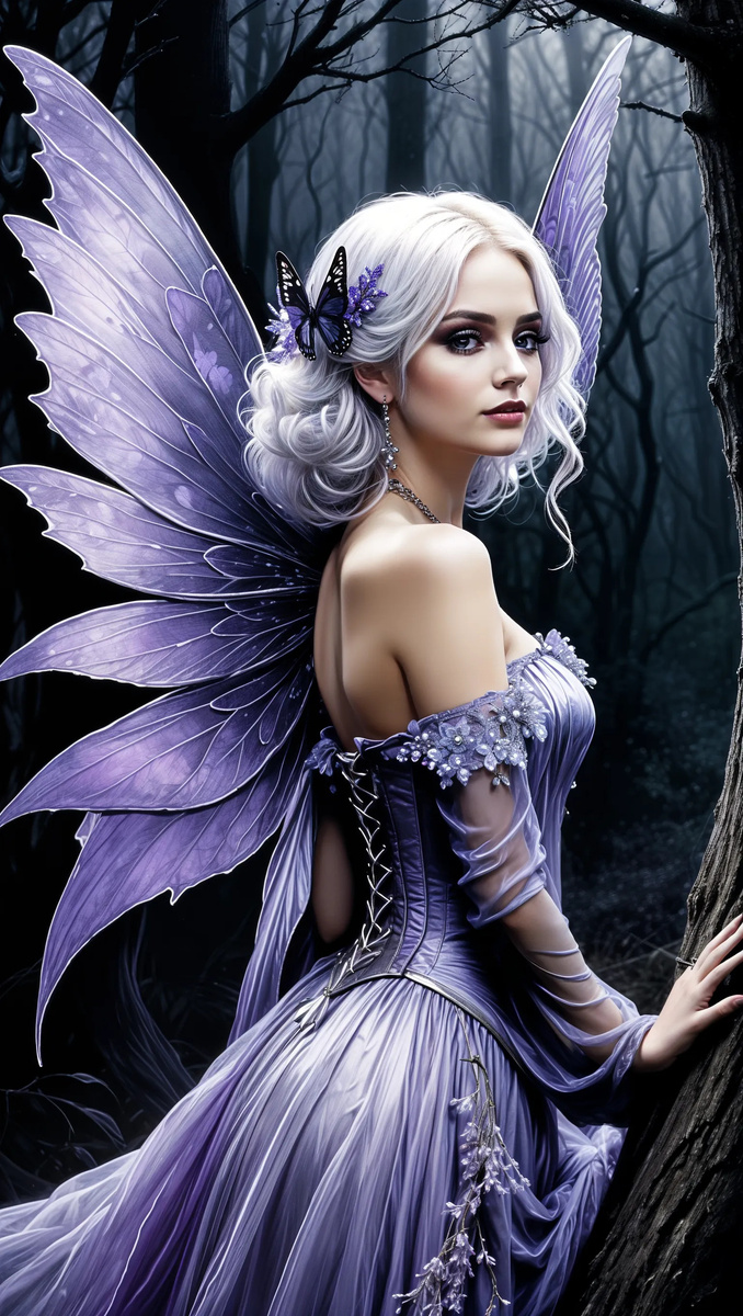 Готическая Фея с лавандовыми крыльями из нейросети Плейграунд