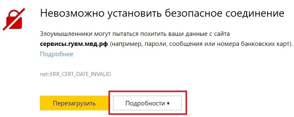 Решили проверить на депорт на сайте МВД, но он не не открывается? Или хотите проверить готовность РВП, ВНЖ, но не получается. Решение есть. На сайте МВД https://сервисы.гувм.мвд.рф истёк срок действия сертификата безопасности 26.08.2024, поэтому браузер выдаёт ошибку. Как решить? Зайти через Яндекс браузер или Google Chrome, при ошибке нажать на кнопку "Подробности" (см. прикреплённую картинку) и выбрать "Сделать исключение для данного сайта", после чего сайт будет открываться. К сожалению, этот способ не работает на смартфонах или планшетах, смотрите на стационарном компьютере. Очень странно, почему сайт МВД не использует российский электронный сертификат безопасности от Минцифры, который уже прописан в российском браузере от Яндекс. Внизу любой страницы на сайте МВД есть "Обратная связь" https://мвд.рф/feedback/, пишите жалобы администраторам сайта. Остались вопросы? Задавайте в комментариях, в нашей группе ВКонтакте или в Телеграм Вестник мигранта