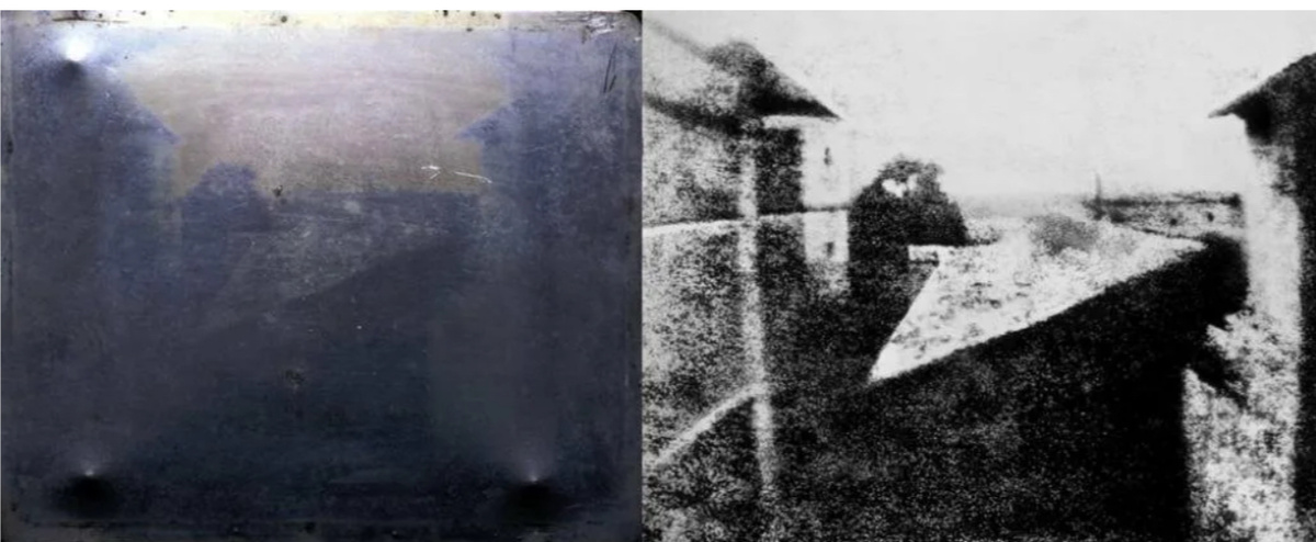 Мобильная фотосъемка - это самый современный вид создания фотографии. Быстро, удобно, камера всегда под рукой, достал смартфон и вот у тебя через долю секунды запечатлен твой фотокадр. На моём канале много полезных статей о мобильной фотосъемке, в которых рассказываю про композицию, цвет, ракурсы. Делюсь своим опытом и отвечаю на ваши комментарии и вопросы под статьями. Заходите в гости, читайте, комментируйте. Но сегодня немножко захотелось отойти от темы и написать про историю создания фотографии. ПЕРВАЯ ФОТОГРАФИЯ Первая фотография появлась в 1822 году, но до наших дней дошла фотография 1826 года, которая была сделана французским изобретателем и художником Жозефом Ницедором Ньепсом. Фотография, известная как "Вид из окна в Лей Грас" (View from the Window at Le Gras). На этой фотографии изображена улица и окружающая местность, фотография сделана из окна дома, принадлежащего Ньепсу. Удивителен факт, что для создания первой фотографии потребовалось 8 часов экспозиции. Процесс создан