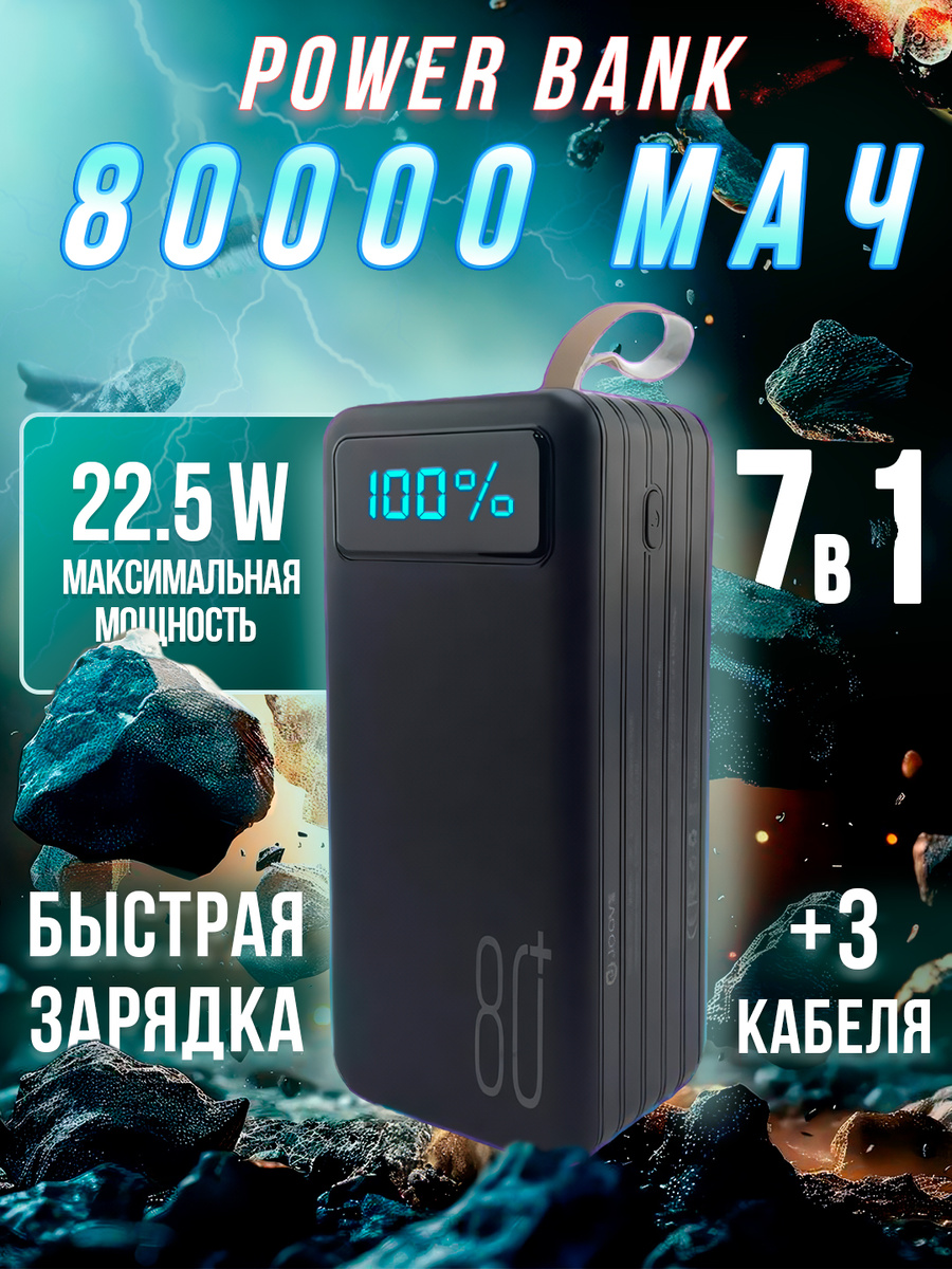Емкость портативного аккумулятора составляет 80000 мАч, что обеспечивает быструю зарядку и продолжительное время работы ваших устройств.