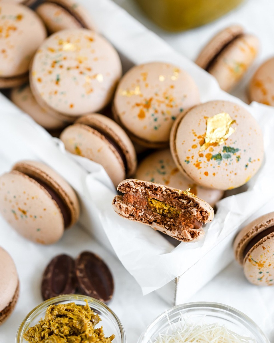 Доброе утро ) вы наверняка уже увидели в интернете все повально готовят дубайский шоколад. Что такое дубайский шоколад? Дубайский шоколад – это шоколад, изготовленный с добавлением фисташковой пасты и других ингредиентов, таких как тесто катаифи и тахини. Он имеет хрустящую начинку, которая делает его особенно вкусным. Почему дубайский шоколад такой популярный в социальных сетях? Дубайский шоколад стал популярным в социальных сетях благодаря своим вкусовым качествам и необычности. Фотографии и видео с этим шоколадом быстро распространились среди пользователей, которые были впечатлены его внешним видом и вкусом. Абсолютно всем, кто пробовал этот шоколад, нравится хруст в начинке, который создается благодаря обжаренному тесту катаифи с фисташковой пастой. А вам я подготовила начинку для макарон «Дубайский шоколад». Ганаш из темного шоколада: 200 г темного шоколада 54-62% 200 г жирных сливок 33% 15 г глюкозного сиропа 40 г сливочного масла 2 г соли Процесс : Сливки соединить с г