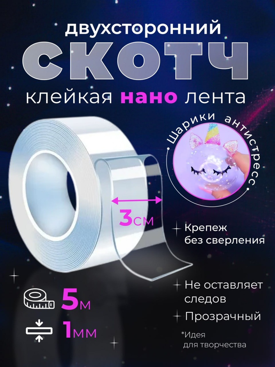 Нано скотч клейкая лента - это универсальное решение для крепления различных предметов в доме. Благодаря своей невидимости она не оставляет следов на поверхностях, что делает ее идеальным выбором для любых нужд. Будь то укрепление картины на стене, прикрепление красивого декора или крепление шариков антистресс для развлечения детей - нано скотч идеально подходит для любых целей. Эта клейкая лента водостойкая и многоразовая, что делает ее просто незаменимой в быту. Вы можете использовать ее не только для повседневных задач, но и для творчества. Создавайте удивительные поделки, декорации и украшения, не беспокоясь о том, что они отвалятся или повредят поверхность. Шарики антистресс дома для развлечения детей уже не будут причинять вам головную боль - просто закрепите их с помощью нано скотч клейкой ленты и наслаждайтесь игрой без ограничений. Это удобное и практичное средство отлично подойдет как для дома, так и для офиса, школы или детского сада. Не теряйте времени на поиск идеальног