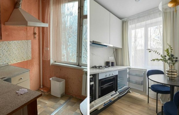 Лаконичный интерьер, в котором нет ничего лишнего Эта однокомнатная квартира в Москве стала объектом быстрого капитального ремонта под руководством дизайнера Анны Каниной. Главная задача заключалась в том, чтобы привести в порядок жилье для студентов: как для собственников, так и для сдачи в аренду. Квартира с типовой планировкой в хрущевке, с площадью 31,5 м² и потолками высотой 2,5 метра, нуждалась в полной переделке. На момент начала проекта квартира была в плачевном состоянии: старая отделка, изношенный паркет, облупившиеся окна. В ходе ремонта решили сохранить существующую планировку, сосредоточившись на функционале и эстетике. Мы подробно расскажем о кухне в этой хрущевке. Кухня в этой квартире требовала особого внимания, так как это одно из самых функциональных пространств, где каждый сантиметр на счету. Дизайнер предложила модульную кухню со шкафами увеличенной высоты, что позволило максимально использовать вертикальное пространство и создать больше места для хранения. Светлые