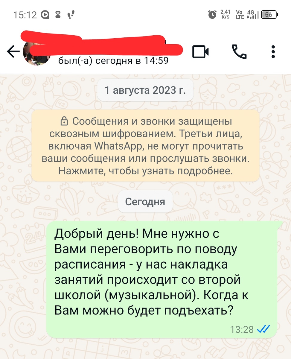 Она ответ присылает, что 10-15 минут не критично. Что найдет время, когда с Кириллом наверстать пропущенное.