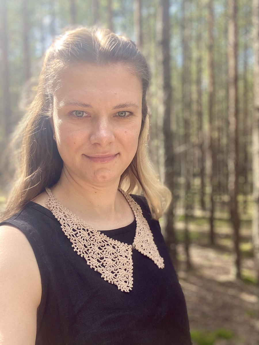 Я ценитель льняной одежды и это то что меня выручает в жару. Лен привлекает меня своей фактурной структурой ткани, легкостью. Собираясь на прогулку в сосновую рощу. Думаю, дай-ка я примерю свой чокер вязанный. Как сочетается оценить можно на фотографиях. Я считаю, что повседневный однотонный костюм уместно дополнить украшением на шею. Чокер завершает образ, и выглядишь изыскано.