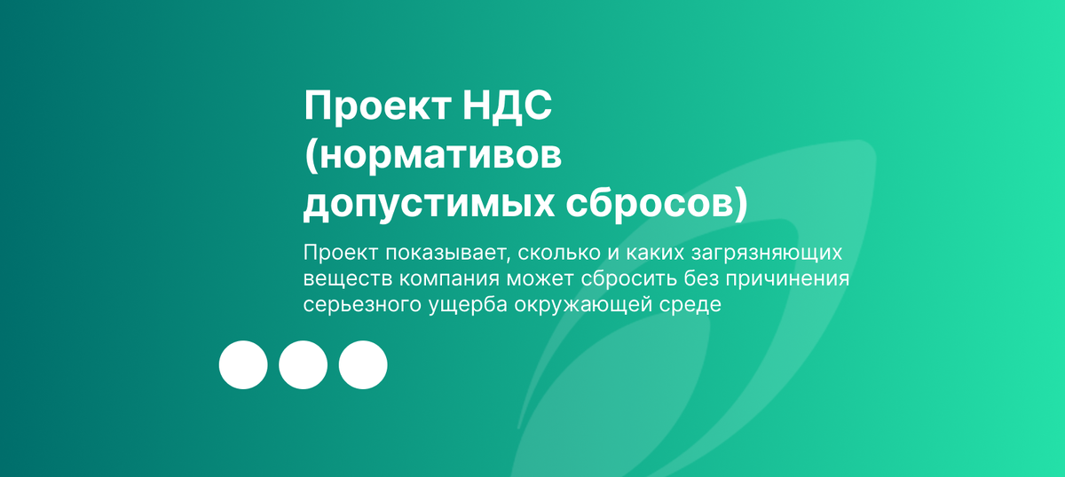 Проект нормативов допустимых сбросов (НДС) определяет максимальное количество загрязняющего вещества в сточных водах, которое может быть сброшено в водные объекты в соответствии с установленным режимом в данном пункте водного объекта в единицу времени, с целью обеспечения нормативного качества воды в контрольном створе.