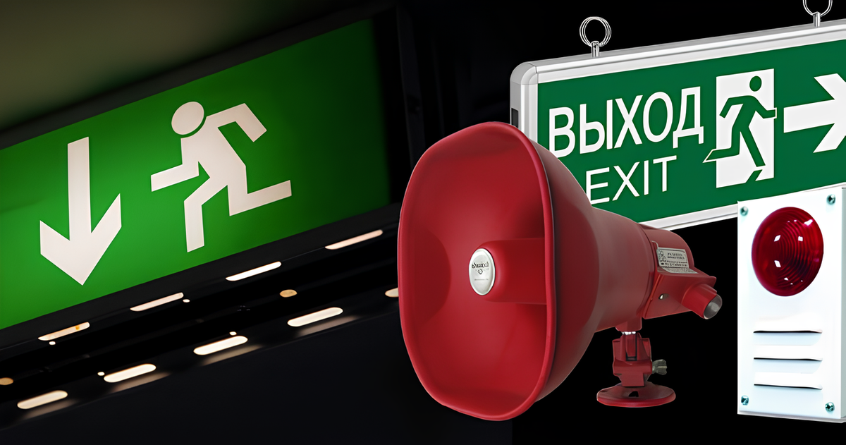 - Системы звукового и визуального оповещения: громкоговорители, сирены, световые табло, информирующие о необходимости эвакуации.
