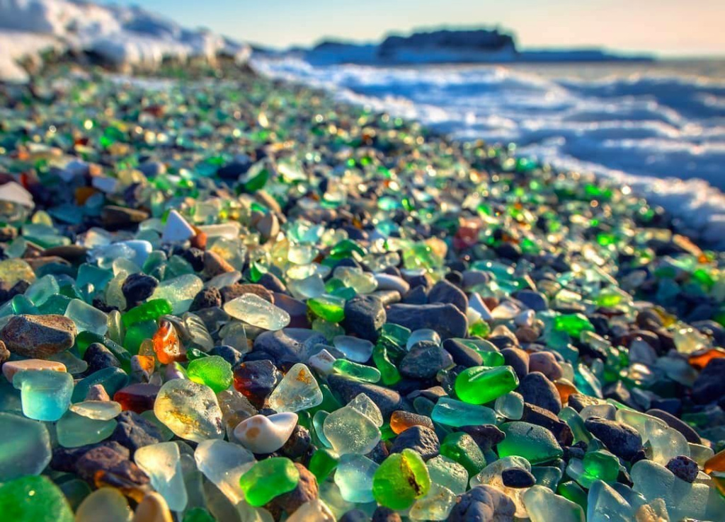 Онега знаменита своими песчаными пляжами, но про стеклянный пляж знают не многие. Здесь нет густых лесов, зато много валунов и холмов, на фоне которых получаются отличные фотографии. Битое стекло выглядит как стеклянная «галька» и переливается всеми цветами радуги в лучах солнца. Пляж находится недалеко от поселка Вознесенье на реке Свирь в Ленинградской области. Вот его точное расположение.
