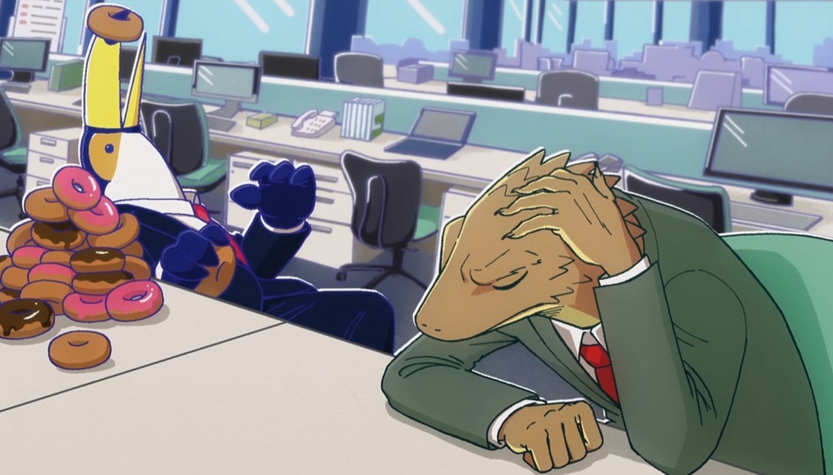 И начнем мы сегодня с вами с произведения, которое на третье место попало лишь из-за того, что здесь вместо рабочего процесса больше внимания уделяется ивентам, но обо всем по порядку. Сюжет здесь отправляет нас в мир полный животных, которые живут обычной человеческой жизнью, а наблюдать нам с вами предложат за буднями одной компании, где работает троица наших главных героев, а именно Лев, Ящер и Тукан.