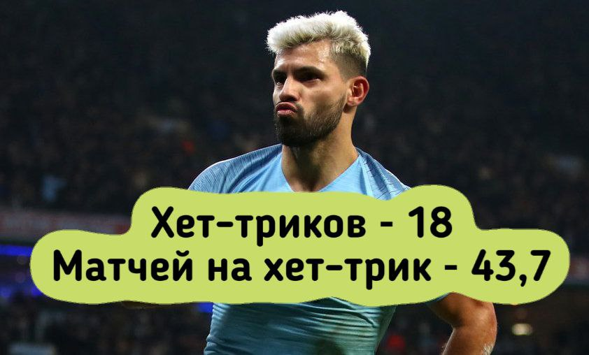 Всем здравствуйте! Забить 2 мяча в одном матче - уже большое достижение. Дубль покоряется не каждому футболисту. А вот сделать хет-трик - гораздо сложнее. Поэтому игроки, забивающие по 3 мяча в одной игре - настоящая гроза для любого вратаря. Хочу представить вашему вниманию рейтинг футболистов, которые сыграли больше 100 матчей и сделали больше 18(!) хет-триков. Таких людей немного - всего 12. К сожалению, из-за проблем с сердцем аргентинец был вынужден завязать с с футболом, но мы его запомним надолго. Агуэро сделал за свою карьеру 18 хет-триков. В среднем на каждую тройку мячей в одной ему нужно было 43,7 матчей. Голландец тоже отметился 18-ю хет-триками, но он стоит выше в рейтинге, потому что для этого ему понадобилось меньше игр - 40,9 матчей на одно трехголевое представление. 38 матчей на один хет-трик у немца. А всего 18. Прекрасный результат. Этому парню всего 2 лет, а он уже 19 раз забивал по 3 мяча в одном матче. В среднем 24 игры для того, чтобы отгрузить трешку в одном мат