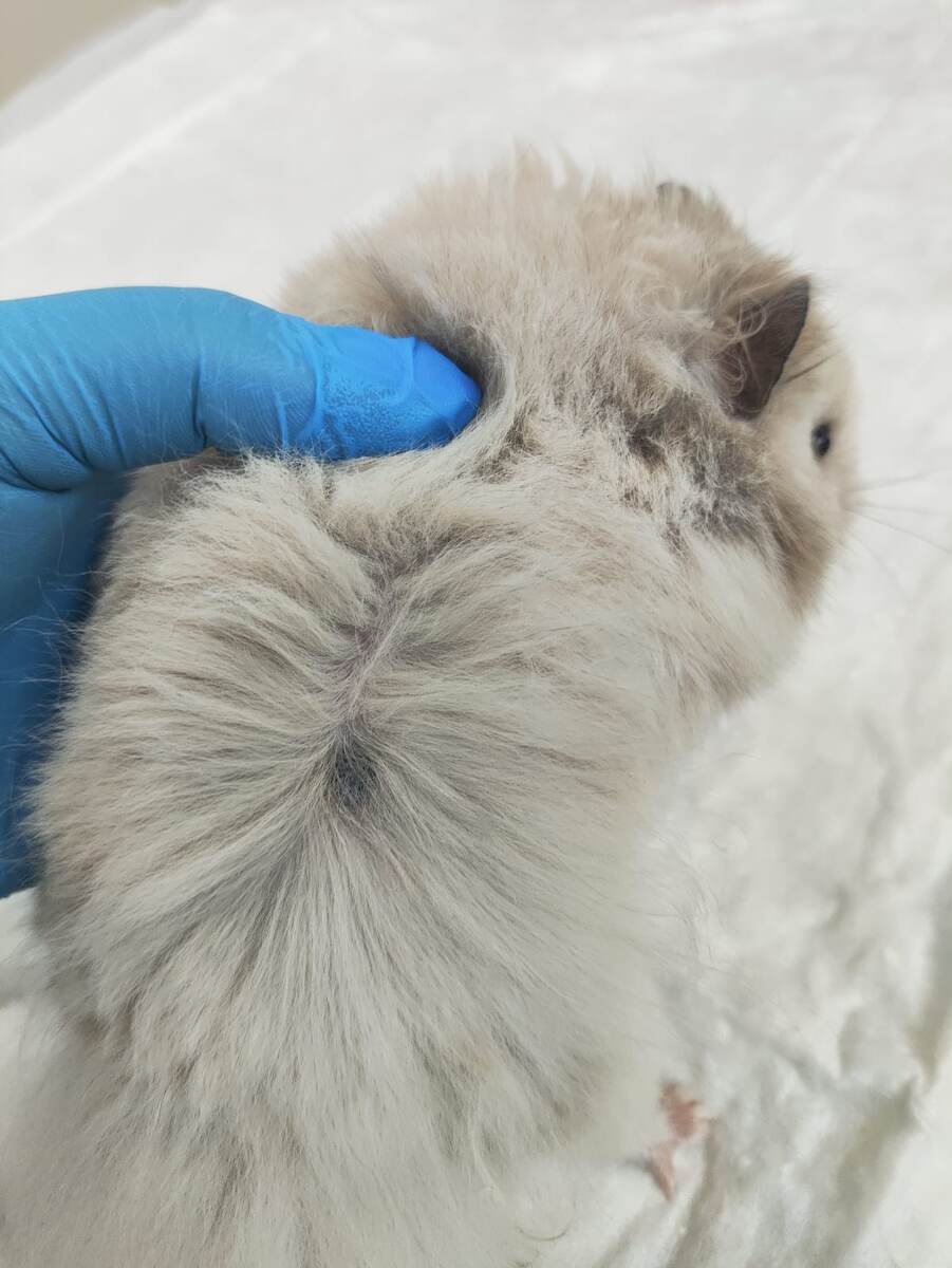 Сирийский хомяк Пумпом приходил к нашему экзотологу Купцовой Екатерине Михайловне. У владельцев были жалобы на чёрное пятно на боку. Доктор поспешила успокоить: это маркерная железа. Секрет маркерных (запаховых) желез используется хомяками для мечения территории. Железы располагаются симметрично по бокам, чуть впереди от задних лапок. Железы не нужно “лечить”, в норме на них не растет шерсть, у самцов они могут быть темнее. Однако, если железа увеличилась в размерах, значительно выступает над поверхностью кожи, это повод показать питомца врачу для исключения воспаления и неопластического процесса? Помимо хомячков маркерные железы есть у песчанок и морских свинок. А вы замечали у своих маленьких питомцев маркерные железы?
