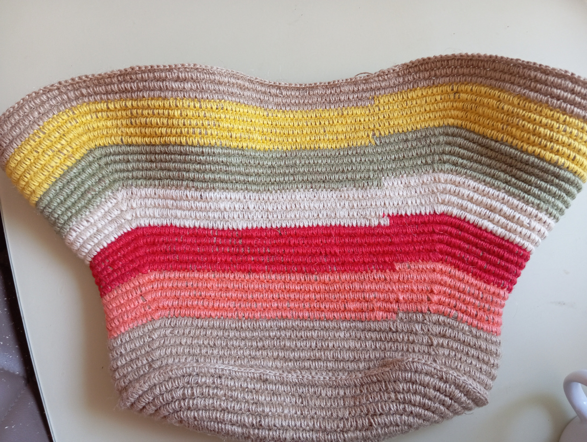 Всём привет, с вами Лисица-ээээ... Короче, просто Лисица. Опозорилась я. Я вот тут обещала рассказать, как я сорвалась со своего пряжного детокса, что навязала из новокупленной пряжи и почему, собственно, мне всё нужно было закончить к 12 сентября: Рассказываю. Я ещё в июне уговорила мужа взять в сентябре отпуск и, плюнув на всё, поехать на море. И вот 13 сентября (в пя-атницу!) мы уехали. На море. Отдыхать, друзья, наконец-то отдыхать, а не лечиться. А раз море, значит пляж. А раз пляж, значит, и набережная имеется. А раз набережная, то не могу же я по ней прогуливаться с целлофановым пакетом! Нужна сумка. Я хочу её непременно прямо сейчас, и хочу я её непременно джутовой и непременно полосатой. Сказано - сделано. Купила шесть бобин джута (перед девчонками из "Клуба анонимных пряжеголиков" стыдно невероятно!), взяла крючок и-и-и... Ну, тут хотелось бы написать "р-р-раз и связала". Нет, "р-р-раз" не получилось, потому что вязать джут то ещё удовольствие, мало того, что во все стороны