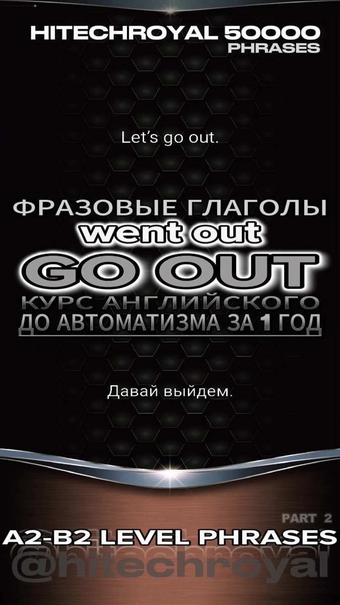 Фразовый глагол "go out" также является многозначным и широко используется в повседневной речи. Рассмотрим его основные значения и примеры использования. ТРЕНАЖЕРЫ: ПРОСТО ВКЛЮЧИТЕ ФОНОМ ЛЮБОЙ Один из самых распространенных случаев использования "go out" — это когда говорят о выходе из дома с целью развлечения, например, пойти в кино, ресторан или на вечеринку. Пример: В прошедшем времени: "Go out" также используется для обозначения романтических отношений между людьми. Пример: В прошедшем времени: Фразовый глагол "go out" может обозначать процесс гашения света или огня. Пример: В прошедшем времени: Этот фразовый глагол может указывать на окончание действия чего-либо, например, срока годности. Пример: В прошедшем времени: "Go out" может использоваться для обозначения отправки сообщения, письма или другого предмета. Пример: В прошедшем времени: Это видео, как и многие другие, является частью комплексного курса "Английский с нуля до продвинутого за один год", который помогает автоматиз