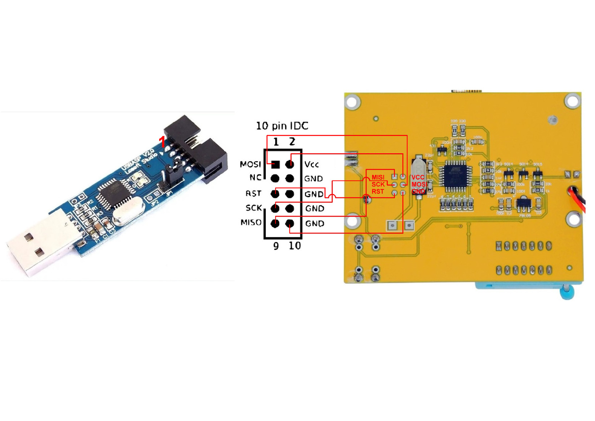4. Подключить программатор к LCR тестеру по схеме на фотографии ниже: