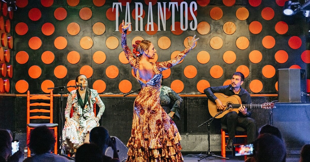 Танец начался с ритмических хлопков и ударов по колонке, несмотря на важность гитары во фламенко, некоторые танцы могут исполняться только под перкуссию, то есть под ритмичные хлопки ладонями, и только потом зазвучал голос.